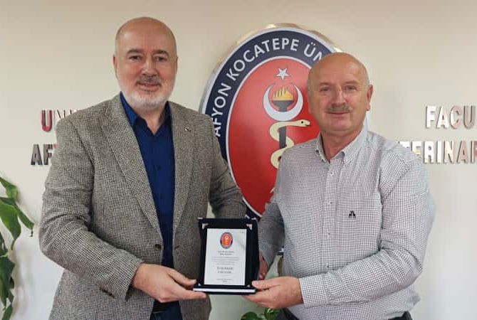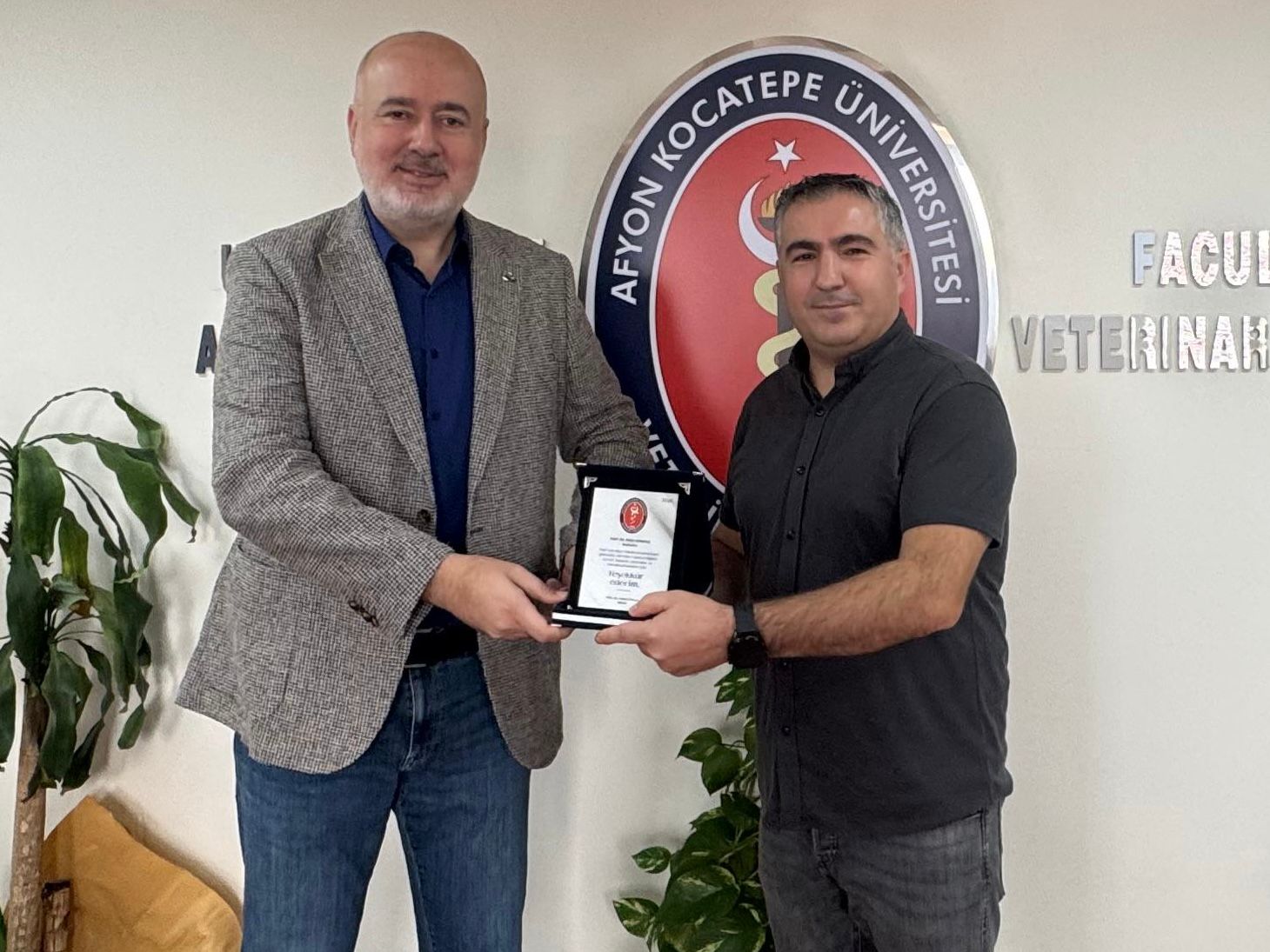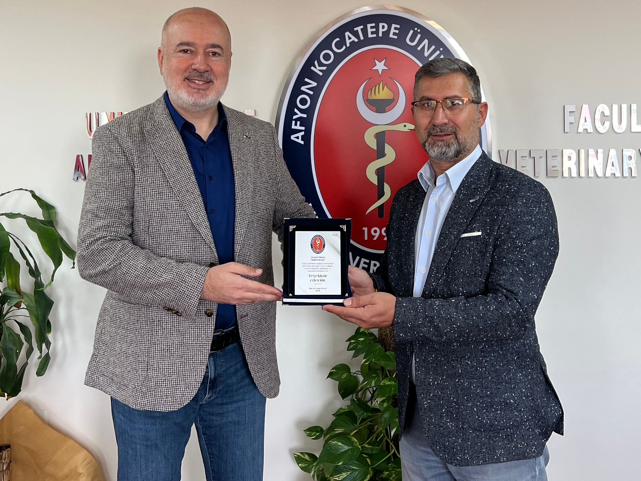 AKÜ Veteriner Fakültesi’nde yaklaşık yedi yıldır devam eden Dekanlık görevini önümüzdeki aylarda tamamlayacak olan Prof. Dr. Turan Civelek, bu süre zarfında yakın çalışma fırsatı bulduğu Dekan Yardımcılarına, eski Dekan Yardımcısı ve şimdiki Hayvan Hastanesi Başhekimine, Çiftlik Müdürüne ve Fakülte Sekreterine özverili çalışmaları ve kurumsal katkıları için teşekkür ederek birer hizmet anı plaketi takdim etti.
