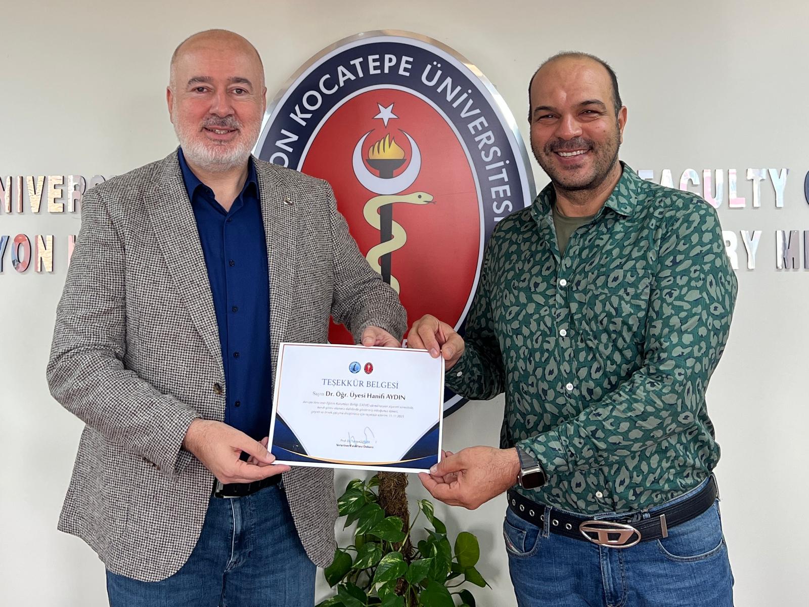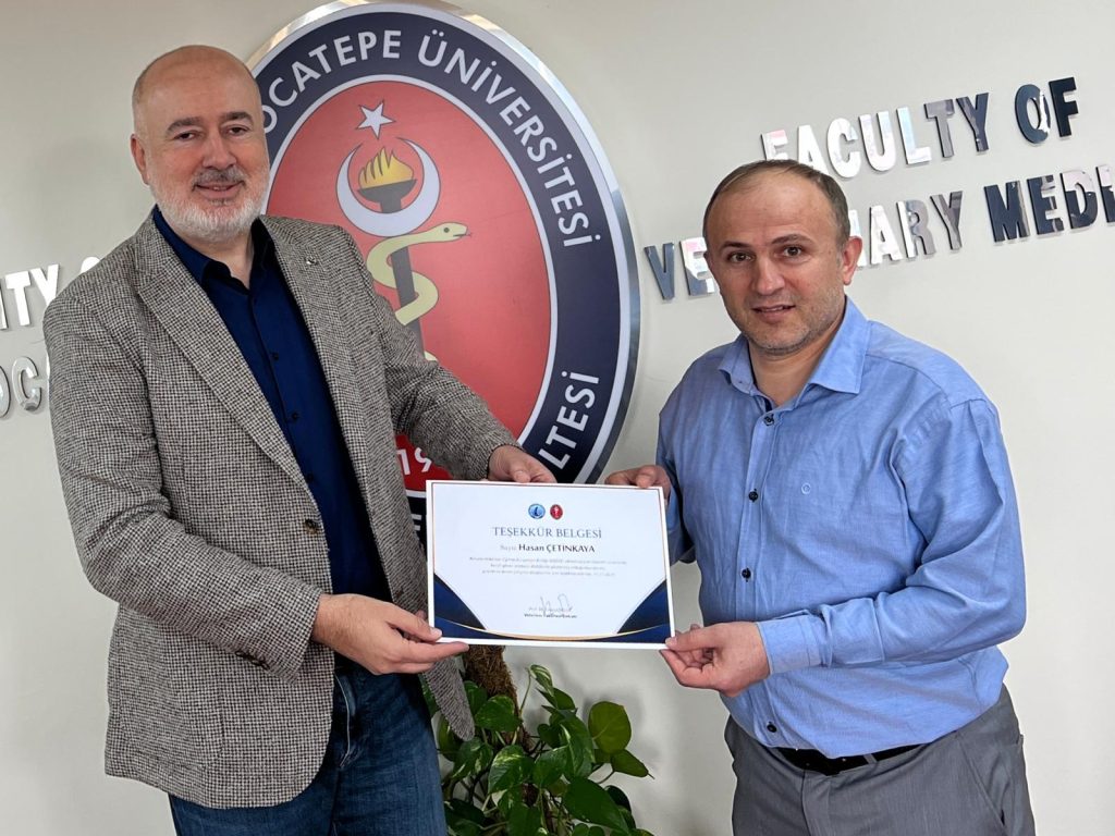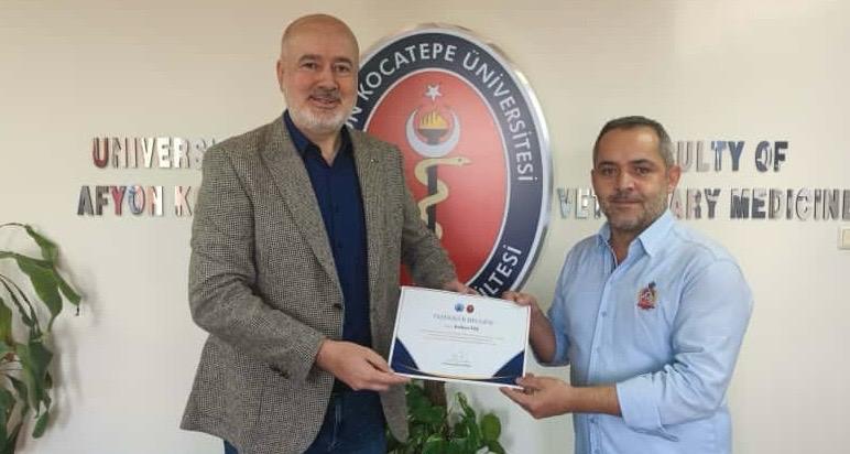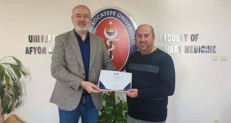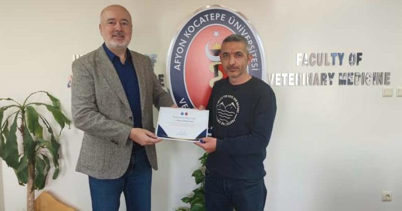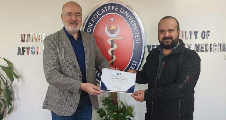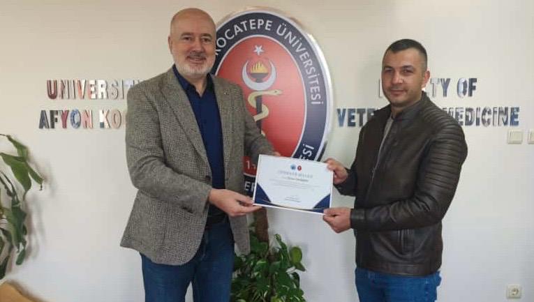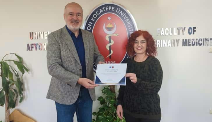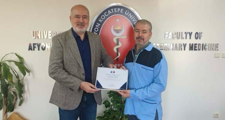 Fakültemiz Dekanı Prof. Dr. Turan Civelek tarafından Fakültenin EAEVE (Avrupa Veteriner Hekimlik Eğitim Kurumları Birliği) akreditasyon süreci ziyaretinin başarıyla tamamlanmasına ek katkı sağlayan akademik ve idari personele teşekkür belgesi verildi.
