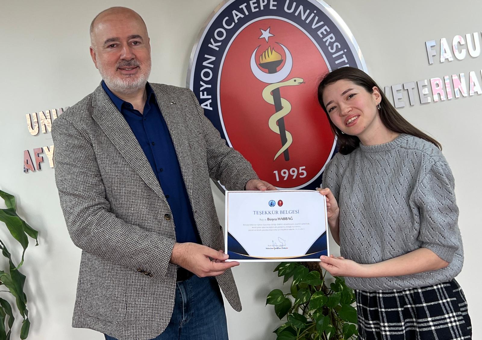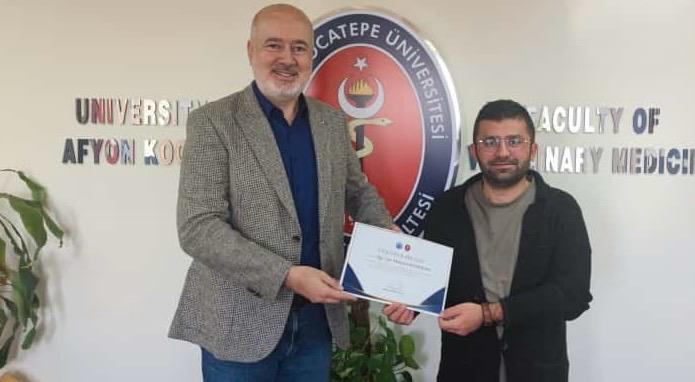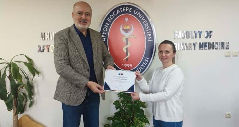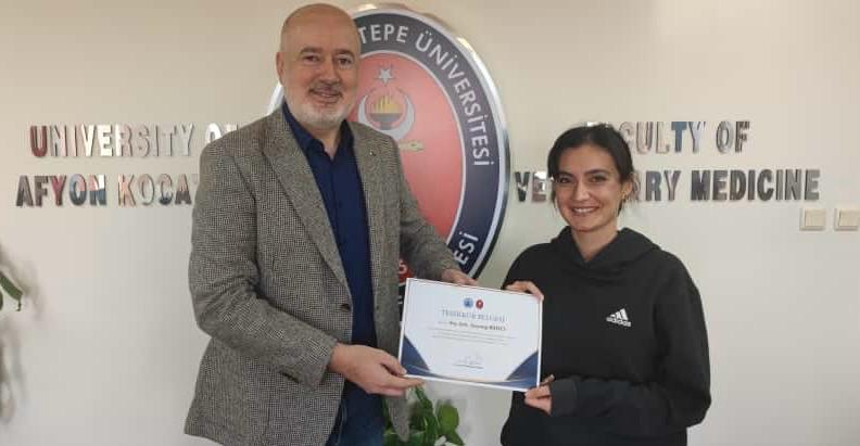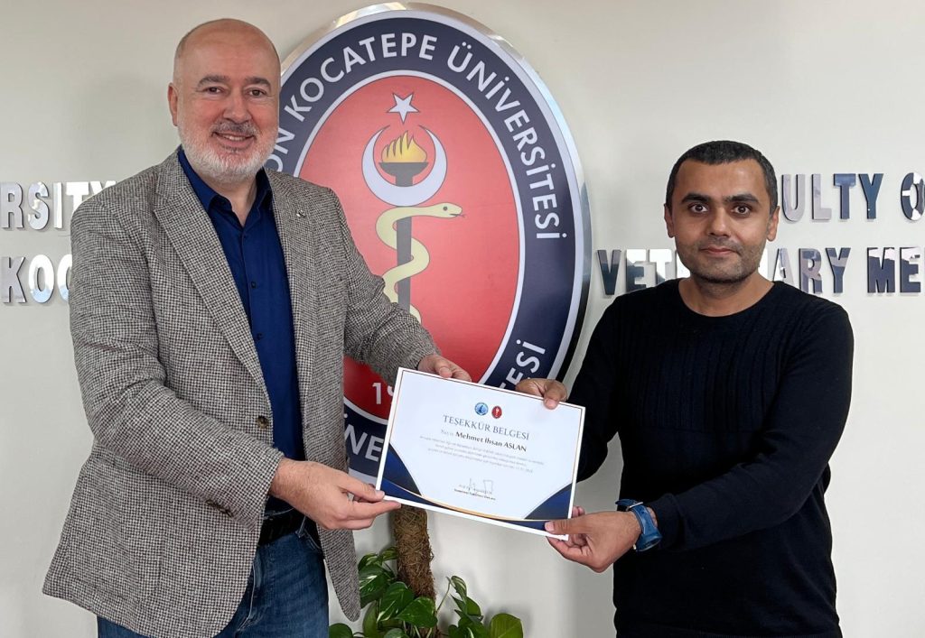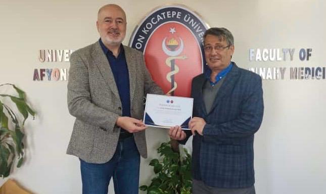 Fakültemiz Dekanı Prof. Dr. Turan Civelek tarafından Fakültenin EAEVE (Avrupa Veteriner Hekimlik Eğitim Kurumları Birliği) akreditasyon süreci ziyaretinin başarıyla tamamlanmasına ek katkı sağlayan akademik ve idari personele teşekkür belgesi verildi.